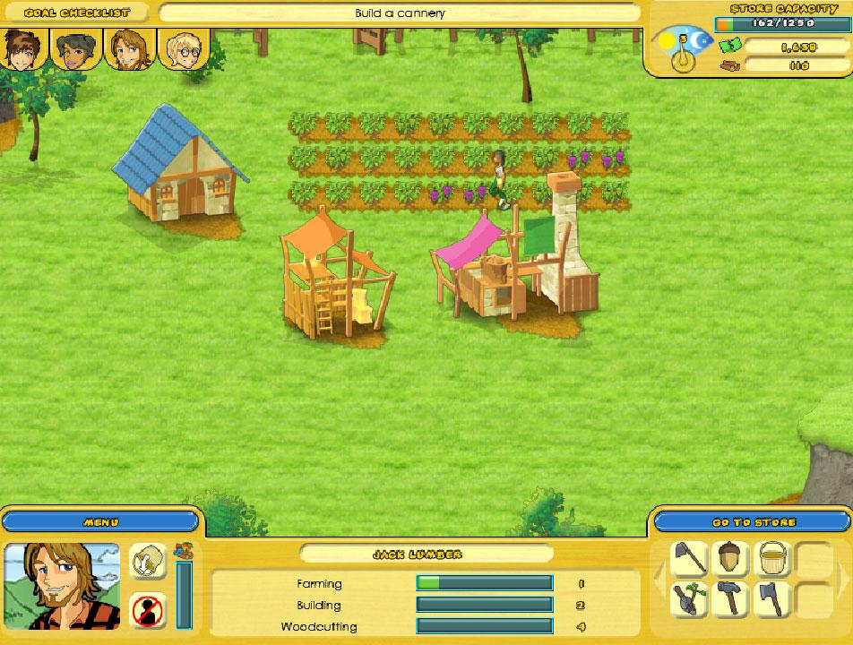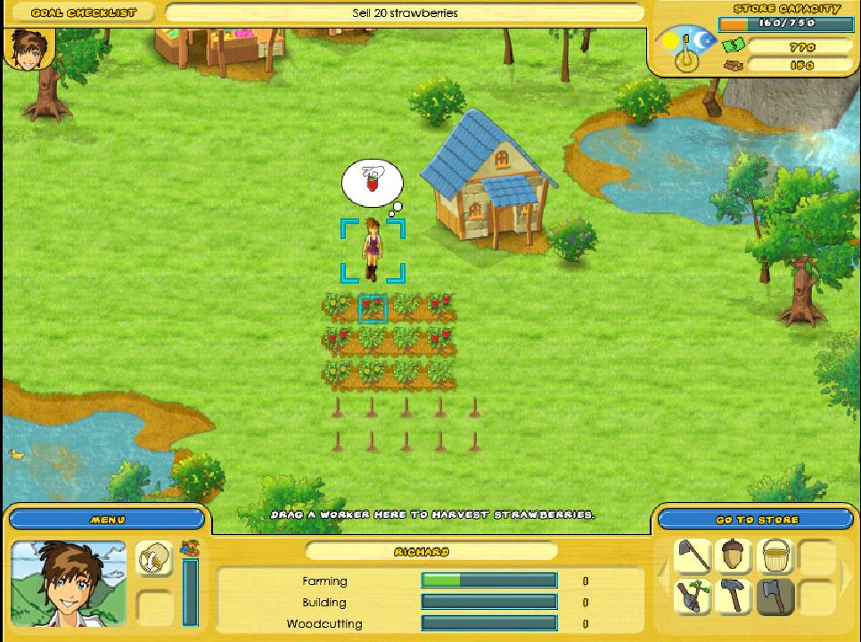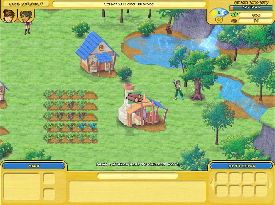 Hire workers, plant crops and harvest wood to earn money.