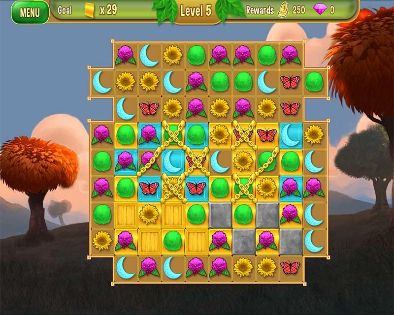 Solve match-3 puzzles in order to gather necessary resource to fund your garden.