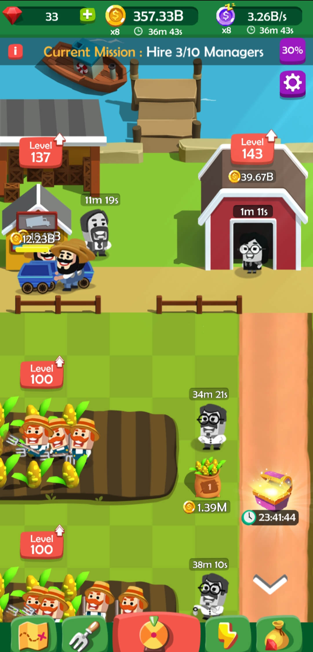 Assign managers and boost your productivity. Idle Farming Commentaire