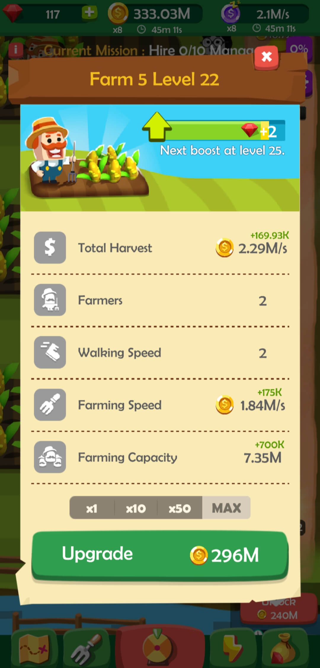 Upgrade your farms and equipment to improve your output and yield.
