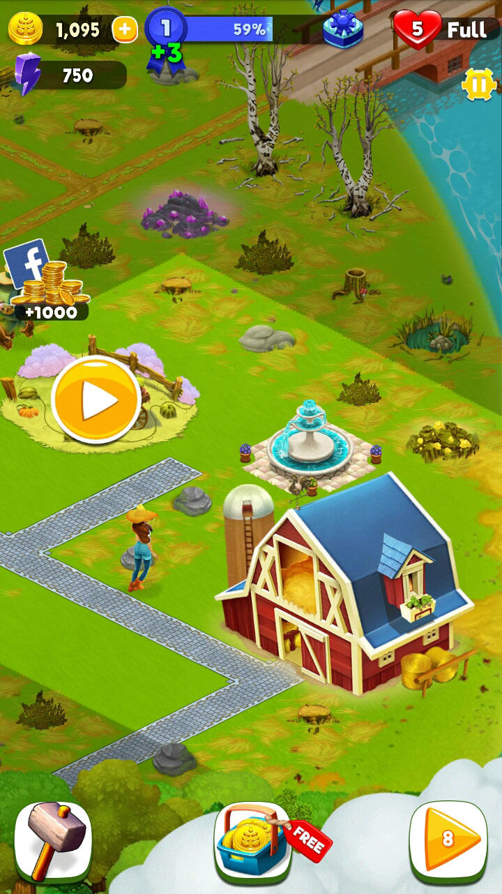 Collect energy to place décor and use materials to restore rundown buildings Farm Slam Recenzie